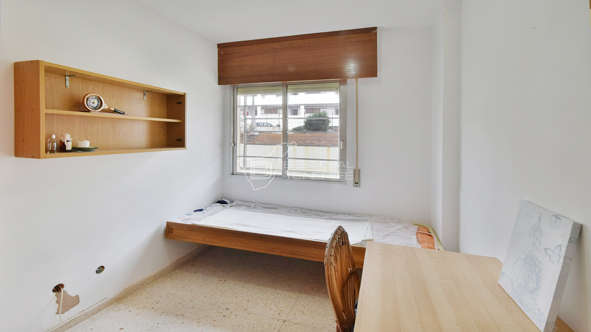 The apartment is located on the first floor. 3 bedrooms (one spacious double bedroom and two small bedrooms), 1 bathroom, 1 small terrace. Fully equipped kitchen and a very bright living-dining room with access to the terrace. There is a utility room and a large garage for one car.
