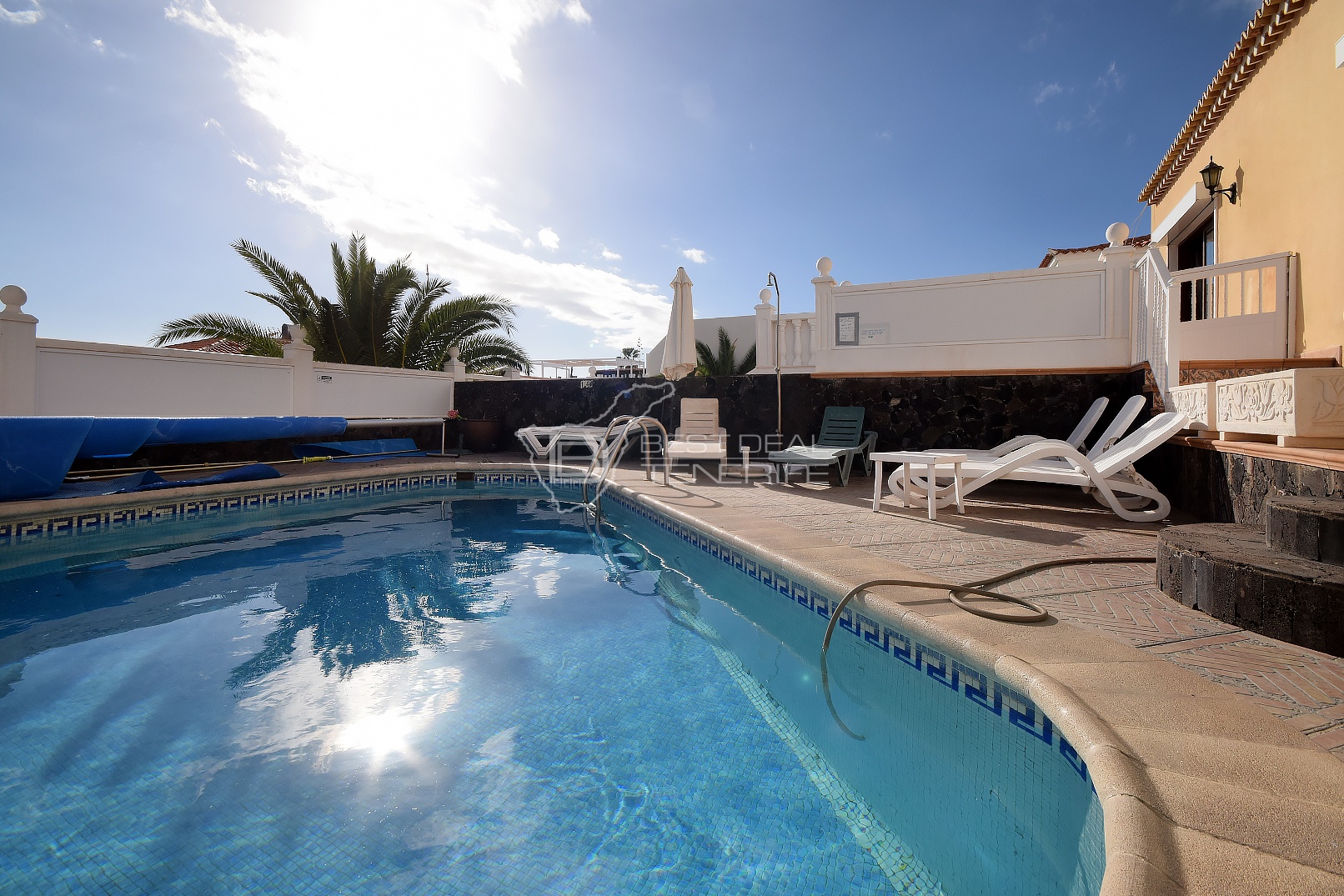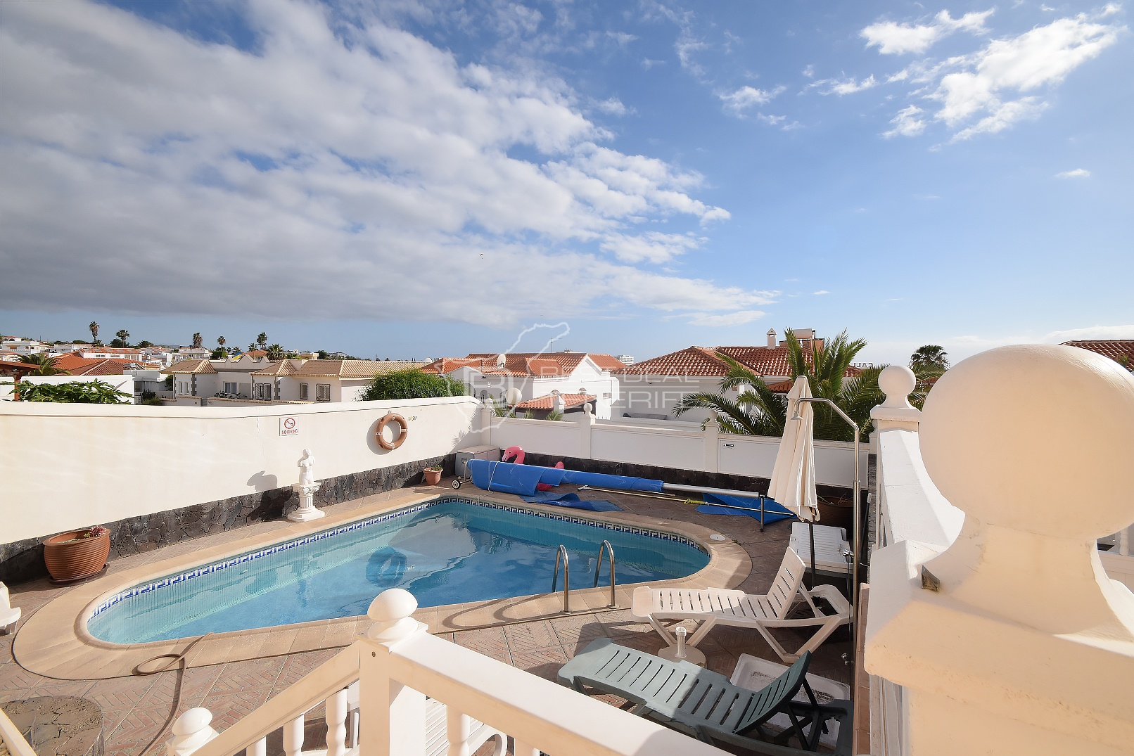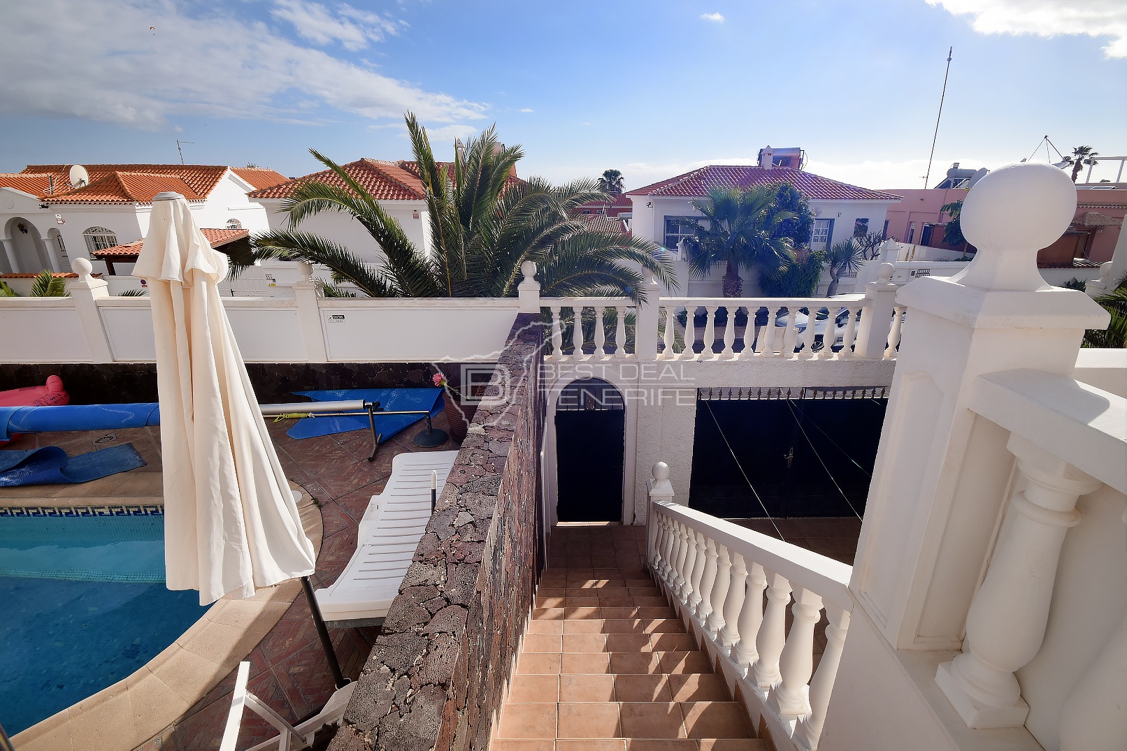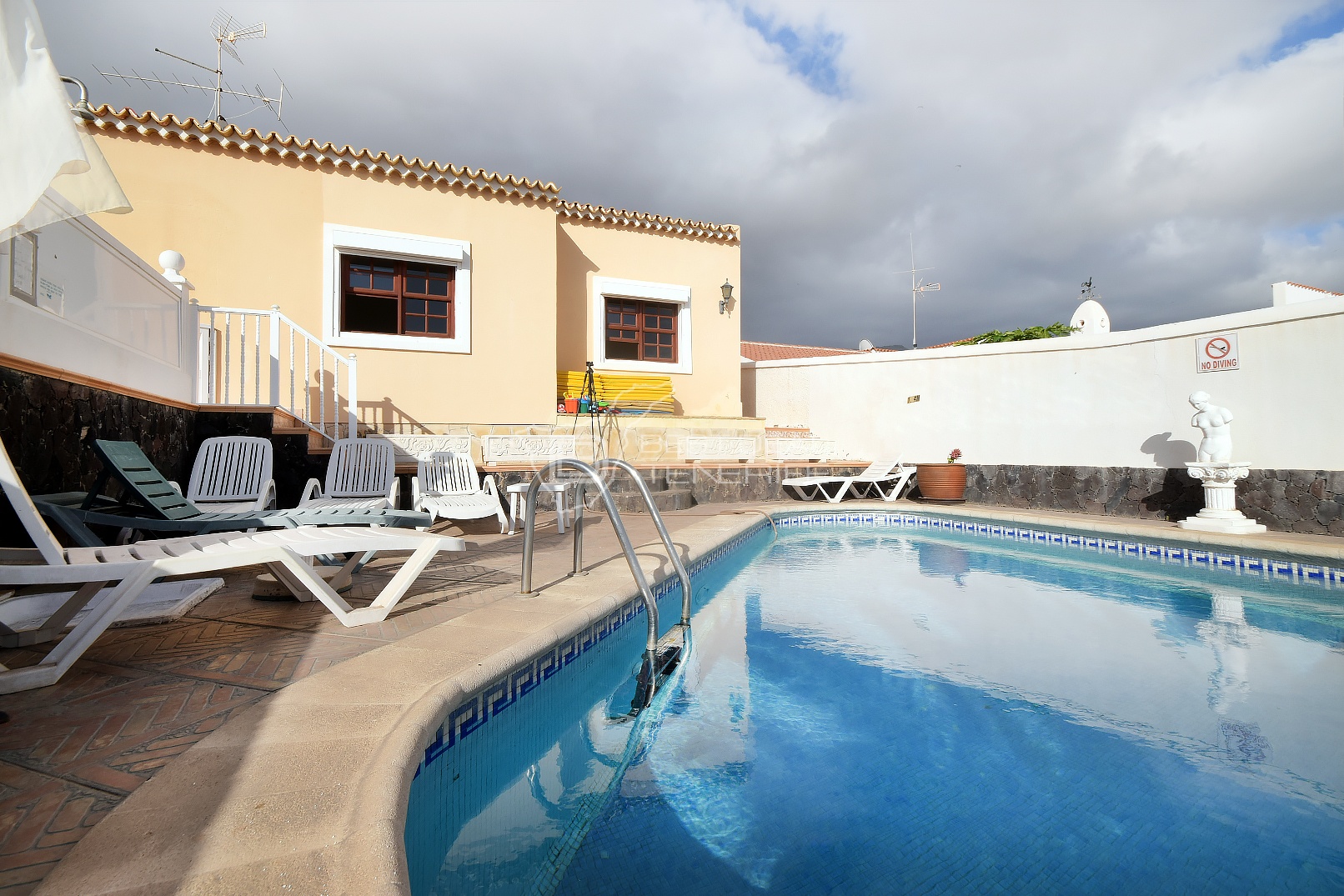 Beautiful villa in Callao Salvaje. The first floor consists of three bedrooms, one bathroom, a kitchenette and a living room, while the second floor consists of three bedrooms, three bathrooms, a kitchen and a living room that opens onto a terrace with a heated pool. The house also has a garage. Located in a populated but at the same time very quiet area, within walking distance of the city center with many restaurants, bars, shops, bus stop and Playa de Ajabo. Living area 170m2 on a plot of 500m2.