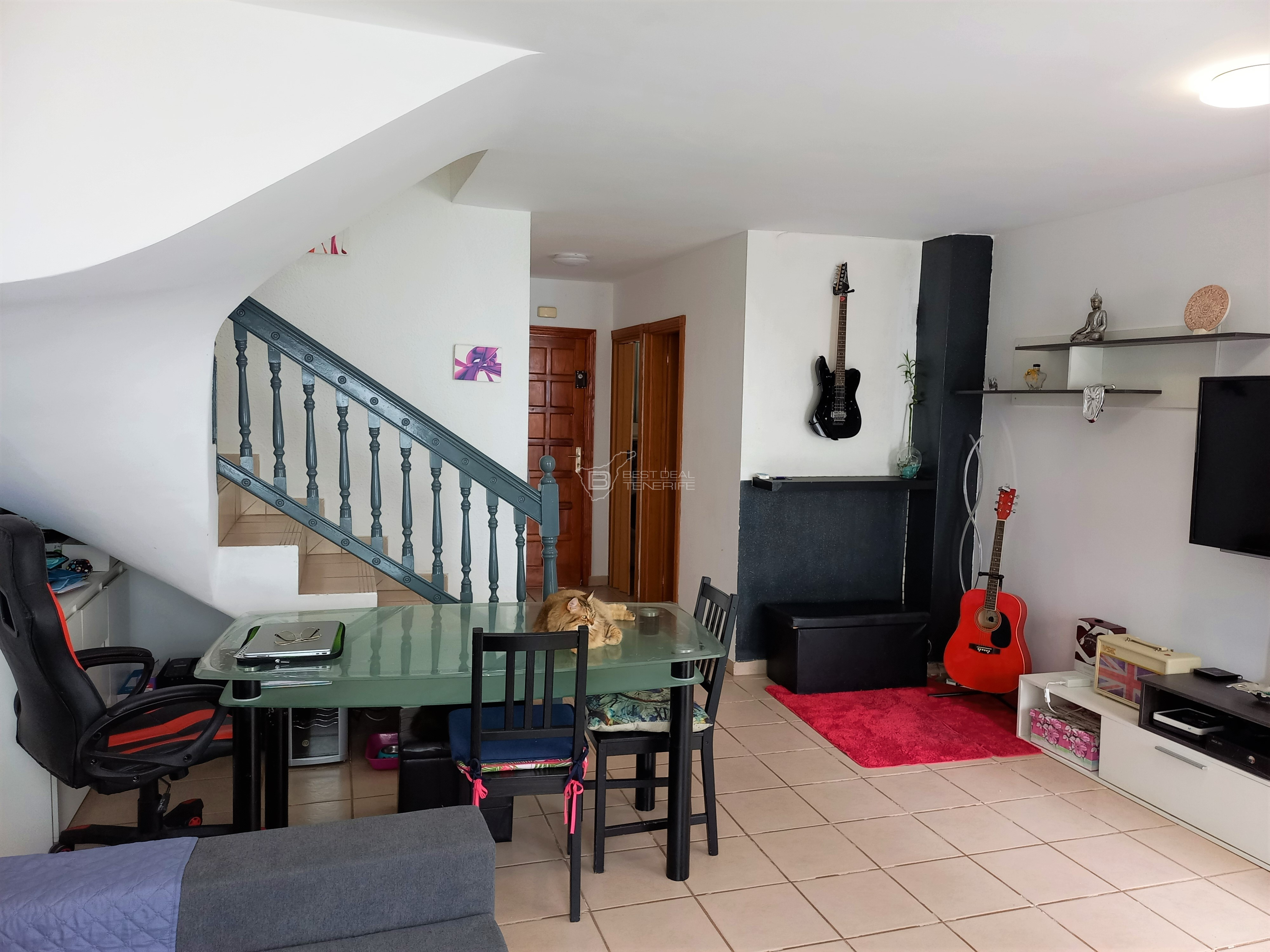 Real Estate Best Deal Tenerife presents this beautiful terraced house of 84 m2 located in the center of Adeje, near the El Galeón shopping center. At the entrance of the chalet you have a large private terrace where you have enough space to enjoy moments with family or friends. The house has two floors distributed in this way: